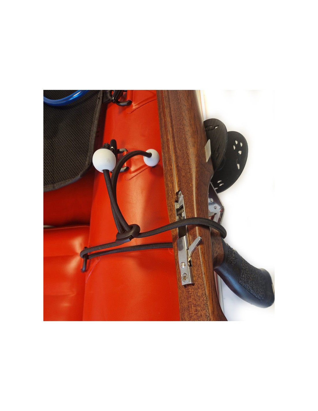 • An den Seiten des Floßes befinden sich die Halterungen für Harpunen und Ersatzpfeile.
