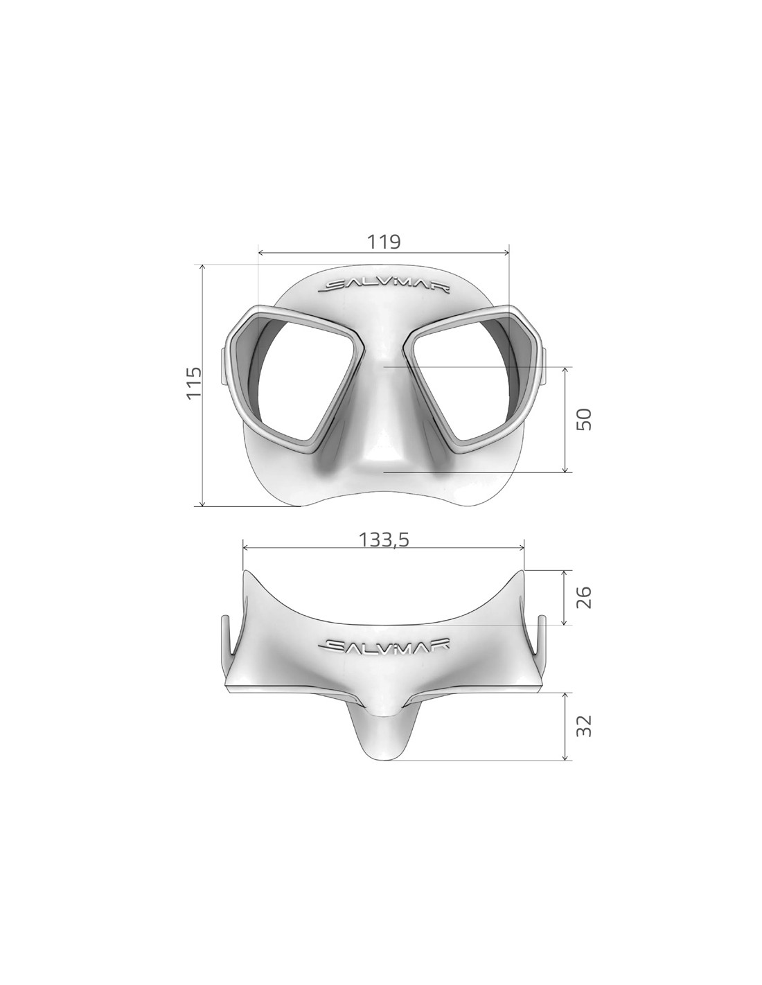 • Zwei-Glas-Maske mit sehr geringem Innenvolumen, aber großem Sichtfeld.