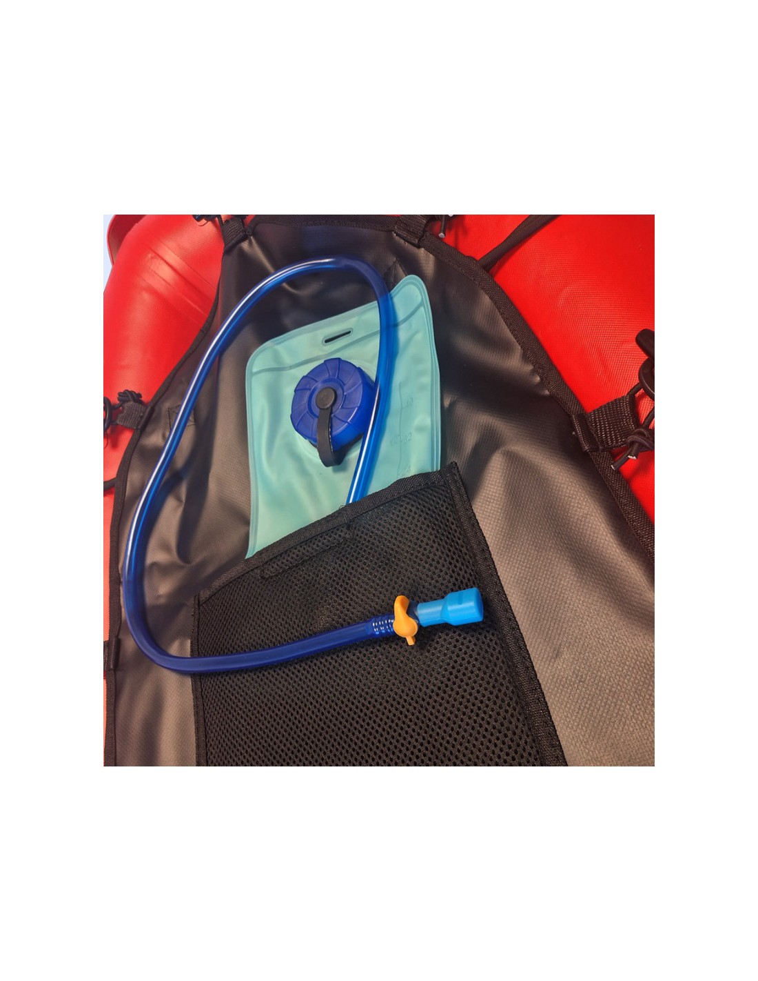 • 1L water bag Type EVA with distribution tube and mouth tip, stuffed in a pocket in the upper skirt.
