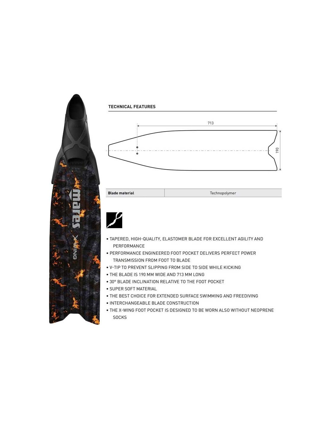 • V-shaped tip to allow a more stable kick and prevent the water from sliding sideways.