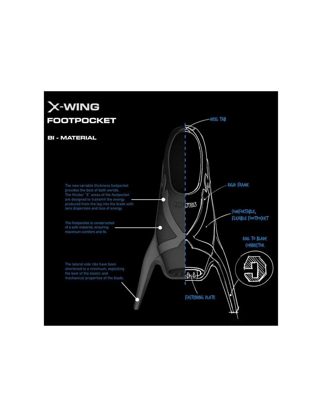• The foot pocket built for maximum performance provides perfect power transmission from the foot to the blade.